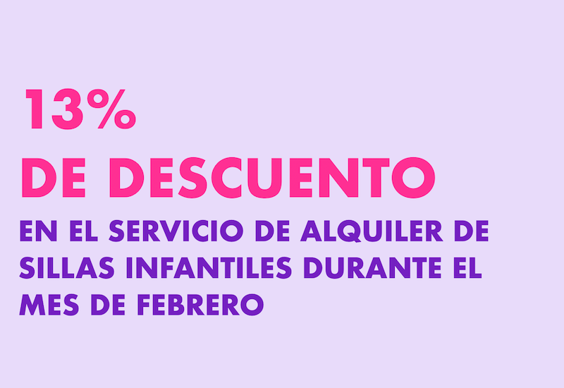 13 % de descuento en la tarifa vigente del servicio de alquiler de sillas infantiles moradasegura.com/rental . Aplica durante el mes de febrero 2026.
