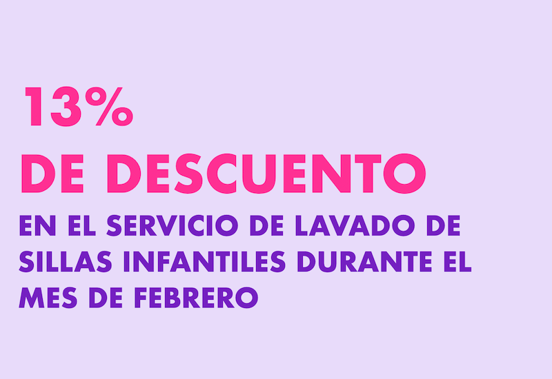 13 % de descuento en la tarifa vigente del servicio de lavado de sillas infantiles moradasegura.com/lavado . Aplica durante el mes de febrero 2026.