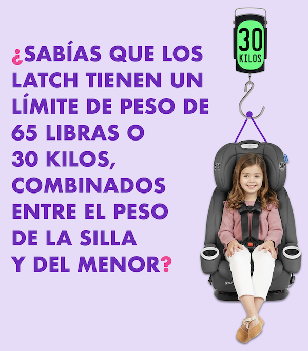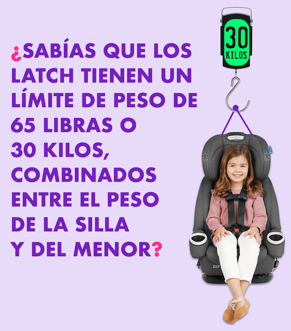 Los isofix tienen un límite de peso de 30 kilos combinados el peso de la silla y del menor. Cuando se excede este peso, la silla obligatoriamente se debe instalar con el cinturón del carro.