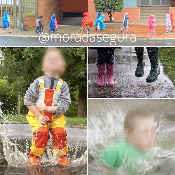 No brincar sobre charcos, podría haber un hueco debajo, por ejemplo, una alcantarilla sin tapa.