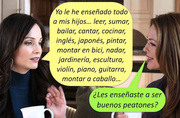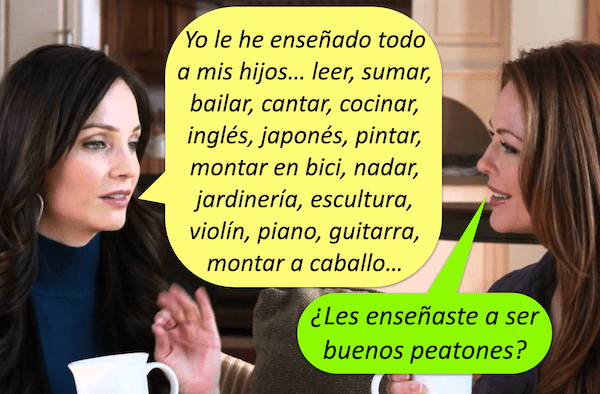 Los niños que no tengan la capacidad de determinar o calcular la velocidad de los carros en la vía, deben cruzar en compañía de un adulto. Esta habilidad se aprende aprox. a los 10 años.