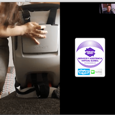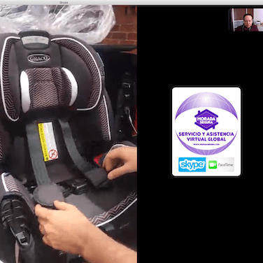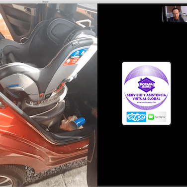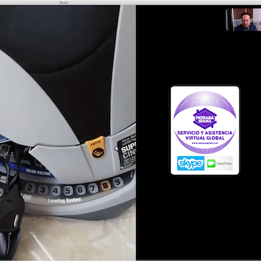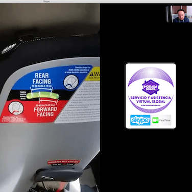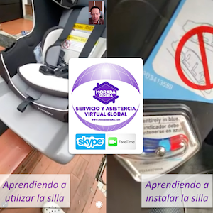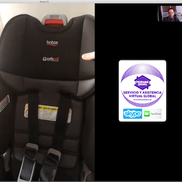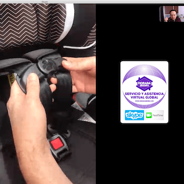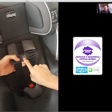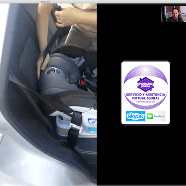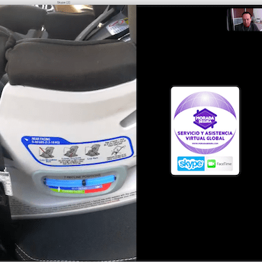De la misma forma en la instalación certificada de la silla, vamos viendo por la cámara y una segunda persona va siguiendo nuestras instrucciones para aprender a instalar la silla.
